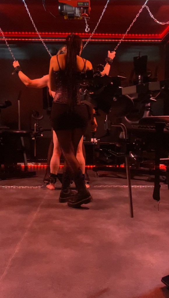 Sessionen följde en traditionell struktur där vi använde olika slagredskap på ett övningsobjekt som tålmodigt väntade i sin cell medan vi fördjupade oss i förberedelser och teknik. Syx visade inte bara ett utmärkt omdöme utan också en imponerande skicklighet i att ge klara och precisa instruktioner – en avgörande färdighet för varje Domina.