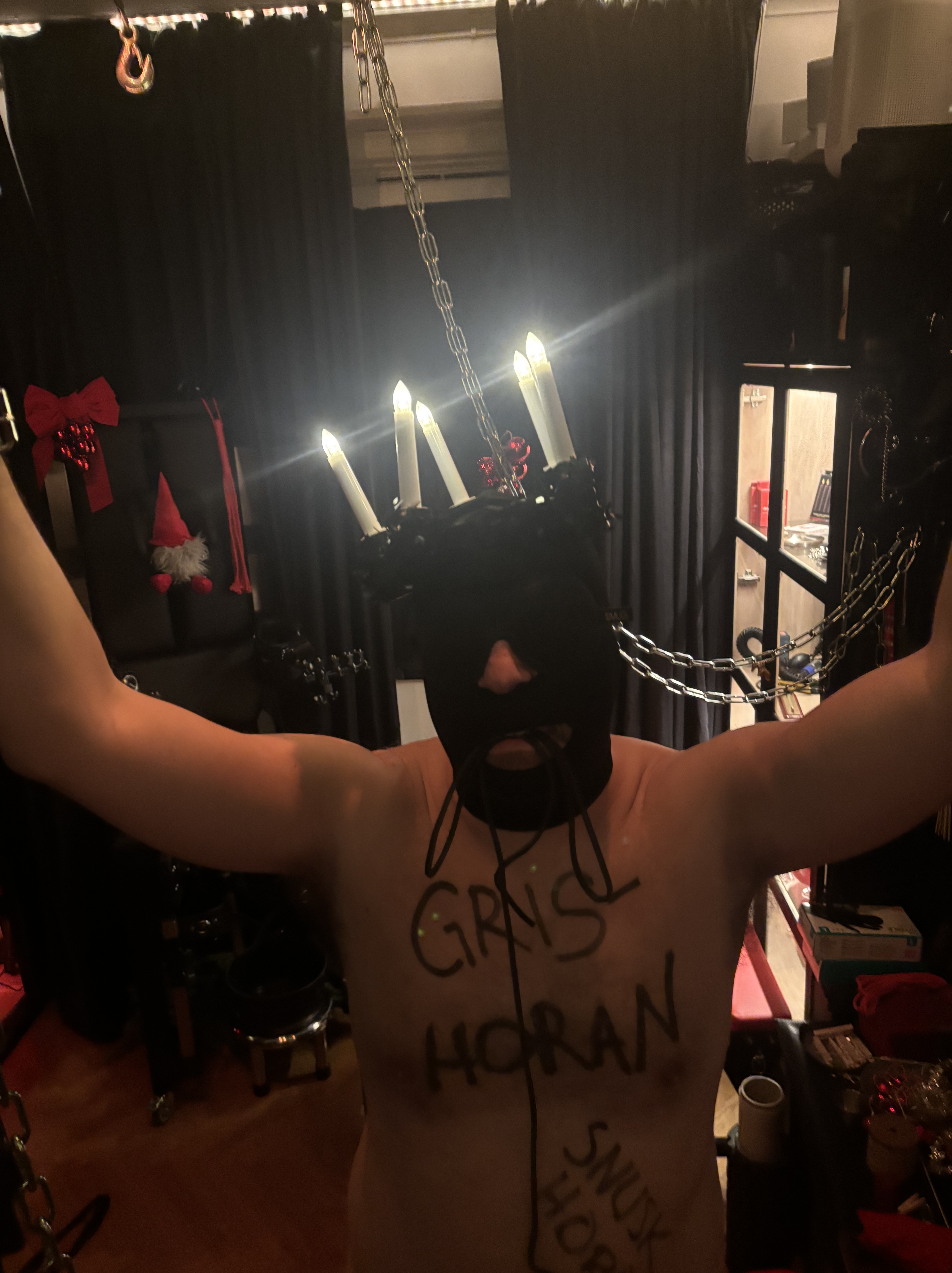 Svart och hård Luciavaka med mörkret närvarande. Natten går tunga fjät. Ordentligt med stryk, hårt öppet och publikt inför gäster i dungeon. Ingen nåd.