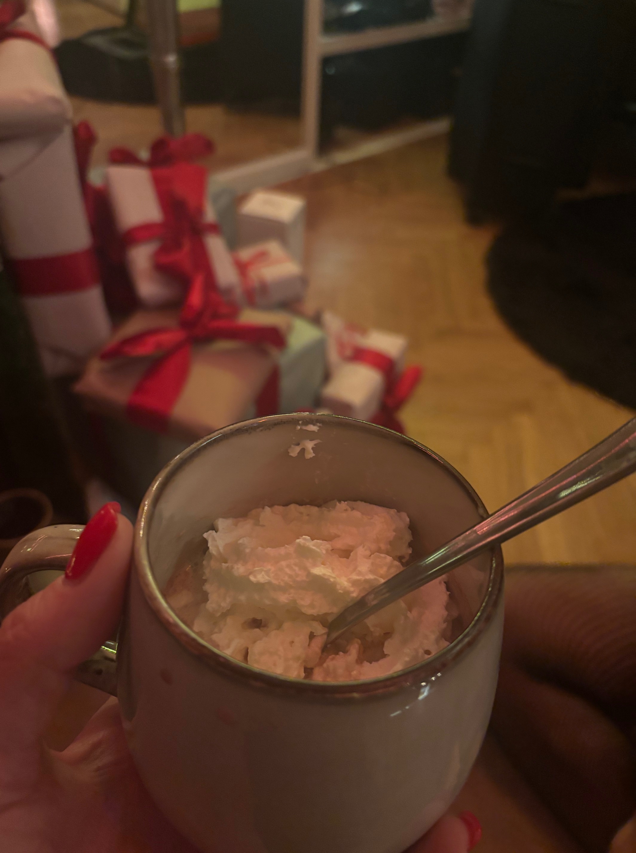 Fint julfirande med Slavhoran, varm choklad med vispgrädde och mängder av härliga julklappar till Queen!