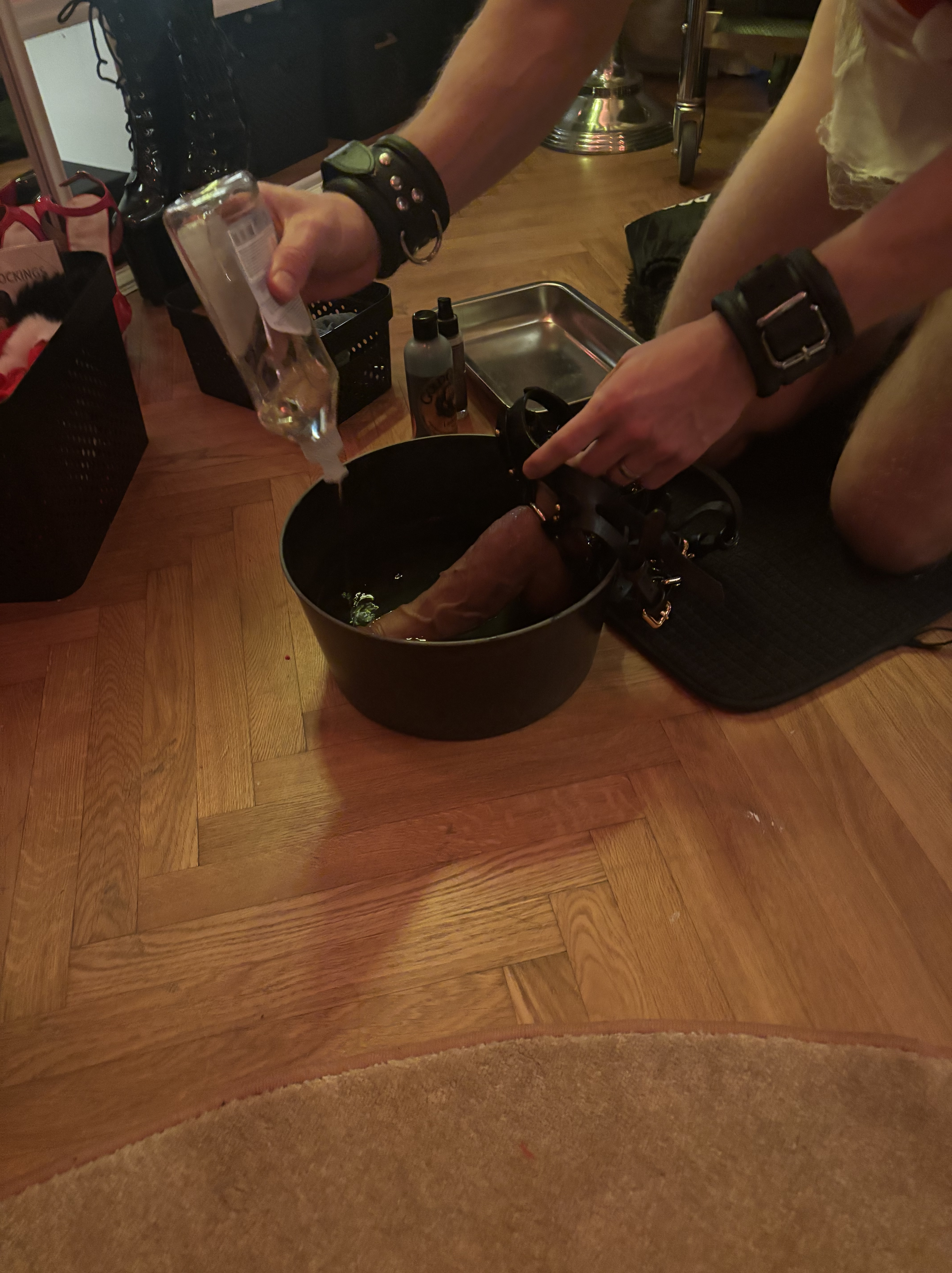 Slavtjänstgöring är även vardagliga uppgifter som att putsa skor, göra rent utrustning, smörja läder, rengöra dildos samt allmänt hålla ordning i min dungeon. En syssla som är nog så viktig och kräver sin tid.