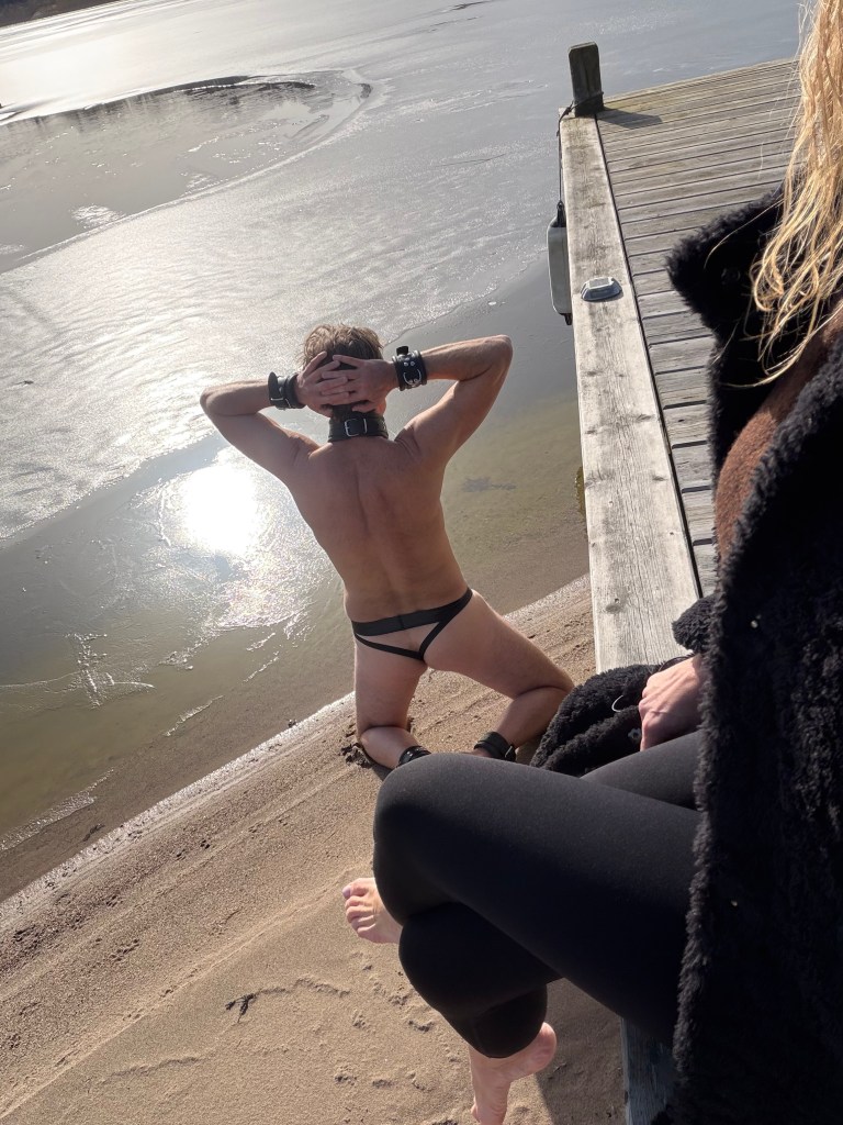 Ute i skärgården med min kontraktsslav. Soligt väder, varm choklad och bullar på bryggan, kunde inte låta bli att ta årets första barfota promenad. Har man en fotvärmare på knä kan man unna sig lite kylig sand mellan tårna.