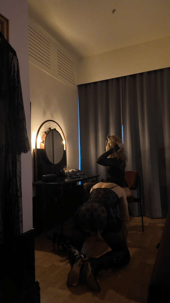 Queen har ordnat nya fina underkläder till slavhoran som ska provas och invigas.